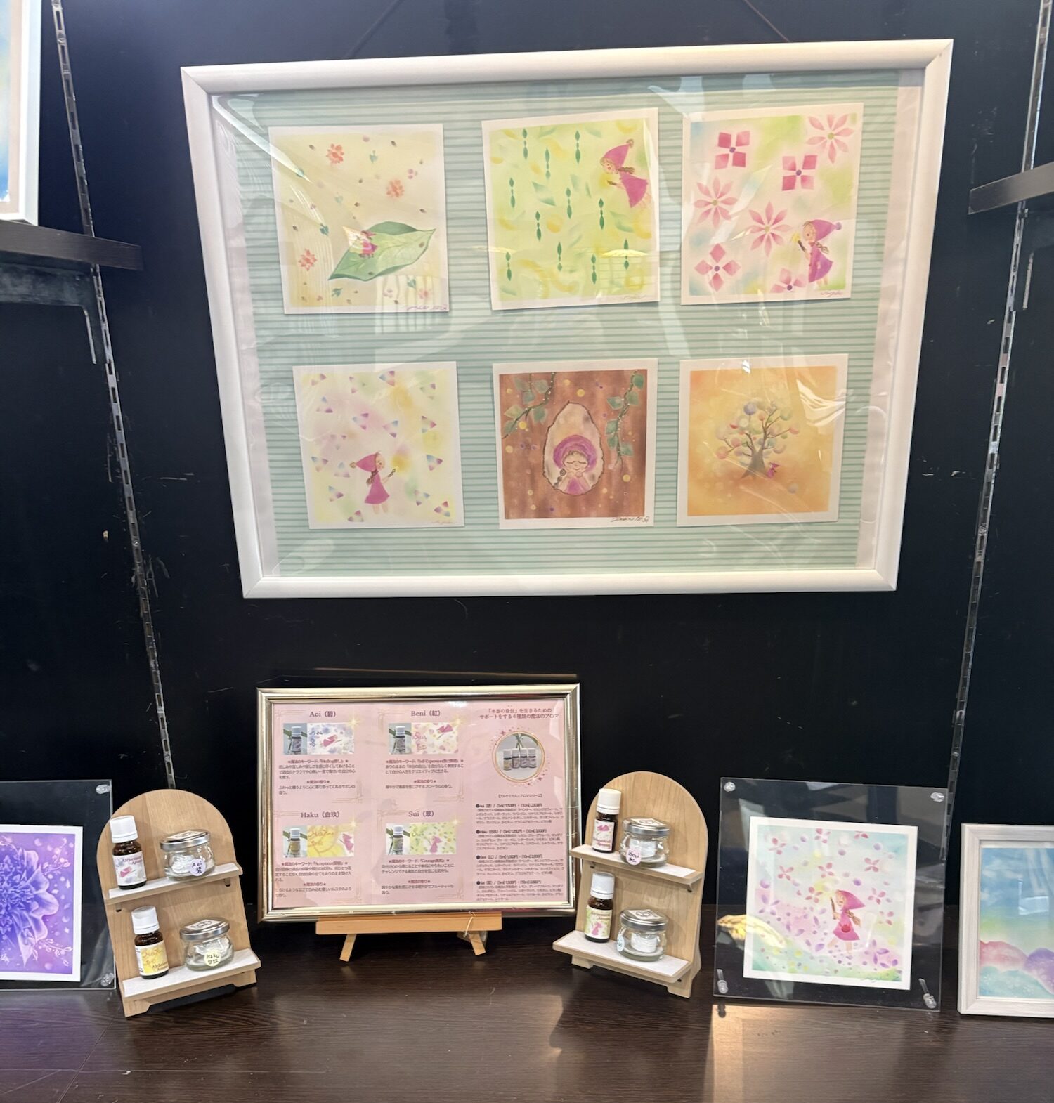 また原画の展示に伴い、この後「物語」に出てくる「マコちゃんが作るアルケミカルアロマシリーズ」のテスターを用意しております。実際に香りをお試ししていただいて、今後の「物語」を感じていただけたら、とても嬉しいです。